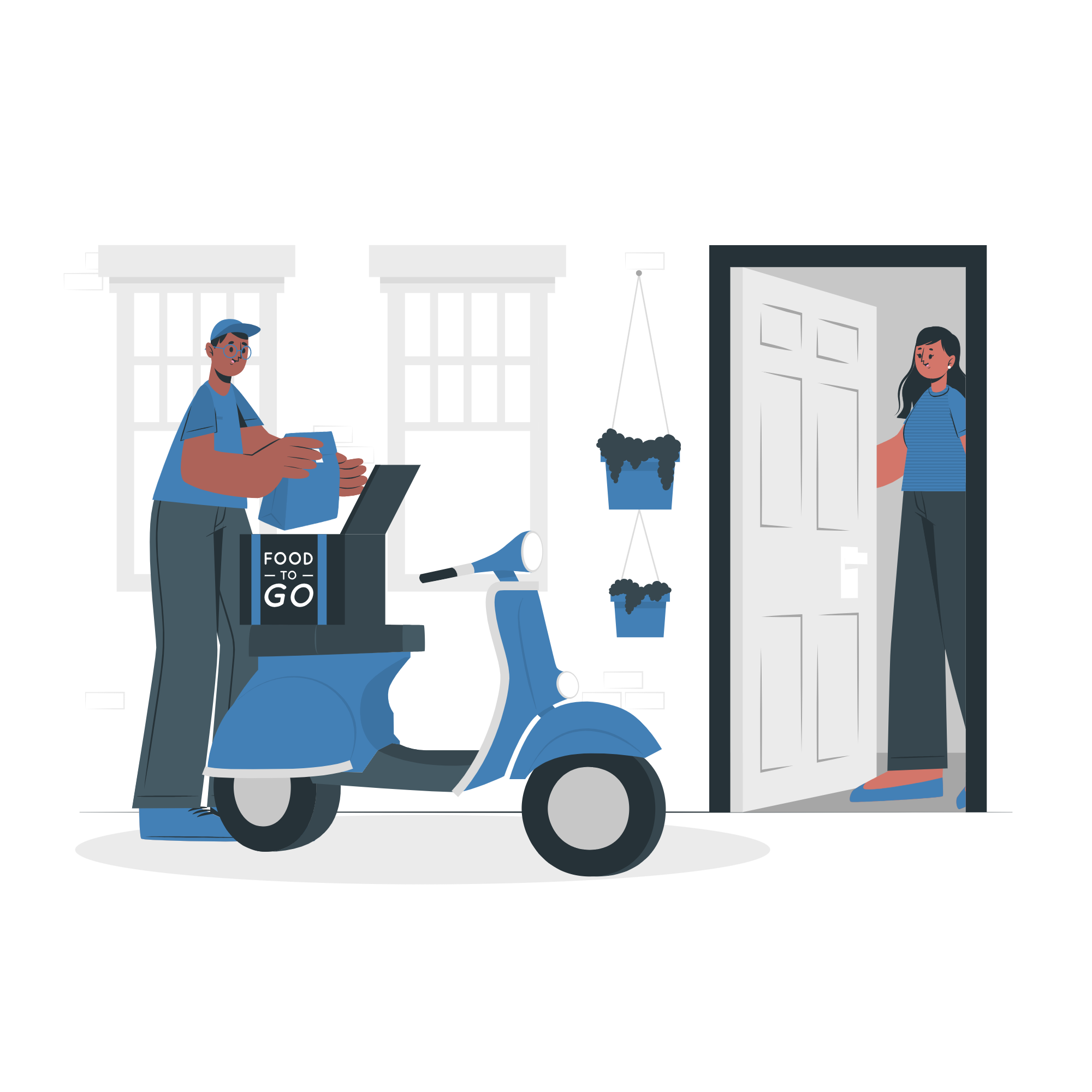 - Door-to-door delivery has been around in many forms: from the old postal networks that would send and receive messages and small packages to the local shops and grocers in the 19th century, using horse-drawn carts to deliver goods, to milkmen and foods delivered right to your doorstep during the early 20th century. By the middle of the 20th century, mail-order catalogs came along, allowing people to order products to their very doorsteps.